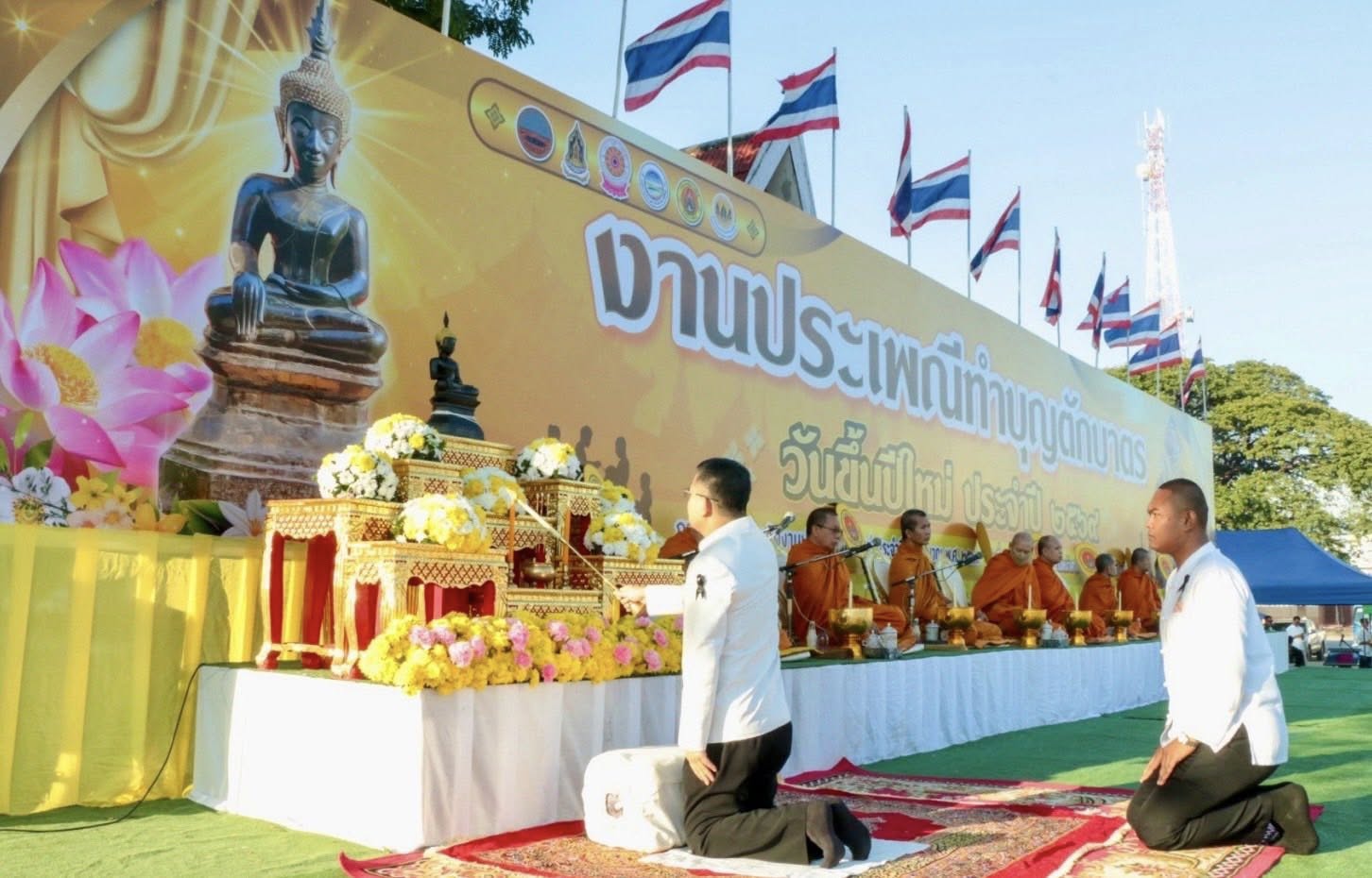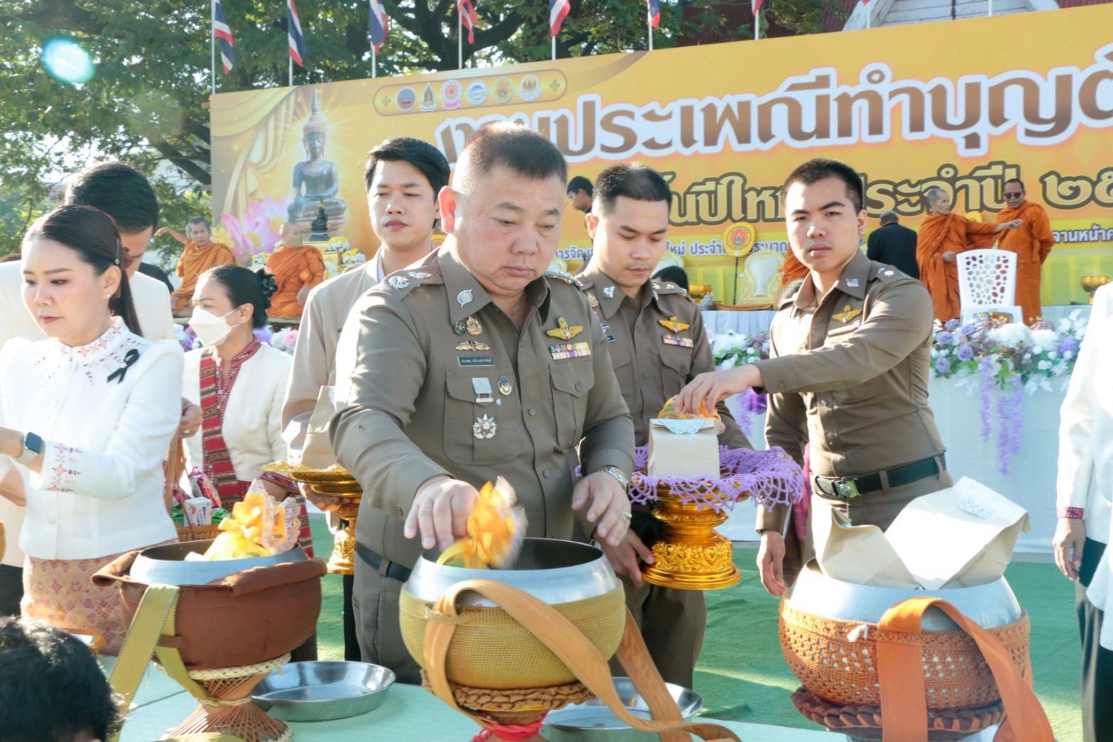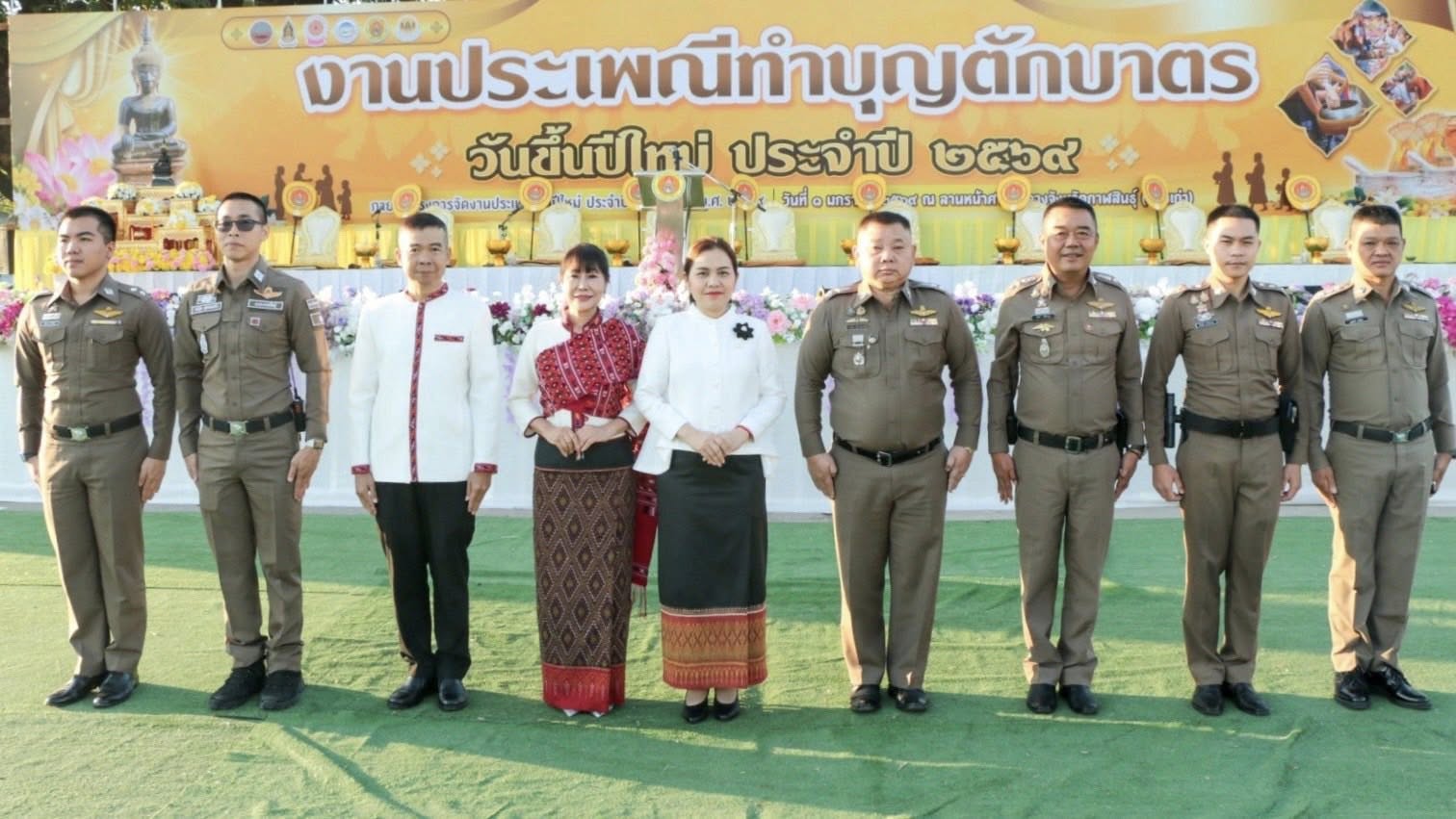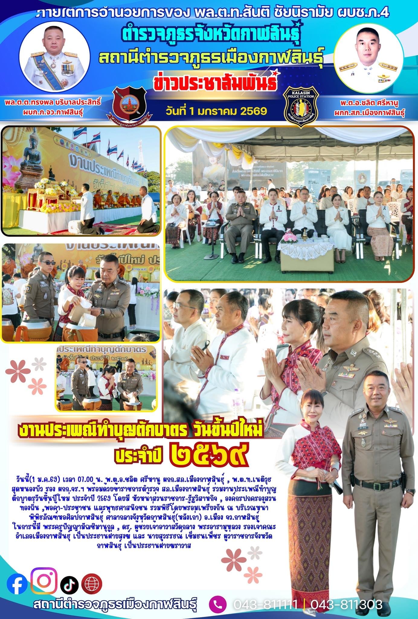 วันนี้(1 ม.ค.69) เวลา 07.00 น. พ.ต.อ.ชลิต ศรีหานู ผกก.สภ.เมืองกาฬสินธุ์ , พ.ต.ท.เนติวุธ สุดหนองบัว รอง ผกก.จร.ฯ พร้อมด้วยข้าราชการตำรวจ สภ.เมืองกาฬสินธุ์ ร่วมงานประเพณีทำบุญตักบาตรวันขึ้นปีใหม่ ประจำปี 2569 โดยมี หัวหน้าส่วนราชการ-รัฐวิสาหกิจ , องค์กรปกครองส่วนท้องถิ่น ,พ่อค้า-ประชาชน และพุทธศาสนิกชน ร่วมพิธีโดยพร้อมเพรียงกัน ณ บริเวณหน้าพิพิธภัณฑ์หอศิลป์กาฬสินธุ์ ศาลากลางจังหวัดกาฬสินธุ์(หลังเก่า) อ.เมือง จว.กาฬสินธุ์