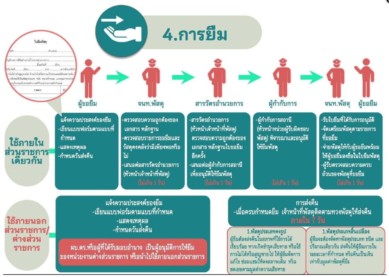 - กำหนดแนวทางการยืมหรือเบิกจ่ายทรัพย์สินของทางราชการ