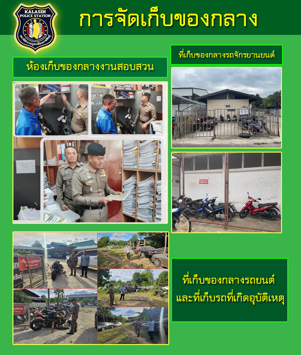 วันที่ 11 ธ.ค.2567 พ.ต.อ.วีระ หางนาค รรท.ผกก.สภ.เมืองกาฬสินธุ์  ออกตรวจที่เก็บรถของกลางและรถที่เกิดอุบัติเหตุ สภ.เมืองกาฬสินธุ์