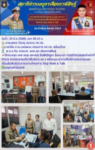วันที่ 25 มีนาคม 2568 เวลาประมาณ 10.00 น. นายนพดล วัฒายุ ประธาน กต.ตร. ,นายวิชัย ป.ณ.นครพนม กรรมการ กต.ตร. , พ.ต.อ.วีระ  หางนาค ผกก.สภ.เมืองกาฬสินธุ์ รับฟังปัญหา ข้อแนะนำ การทำงานของเจ้าหน้าที่ตำรวจ จากประชาชนที่มาใช้บริการที่สถานีตำรวจ