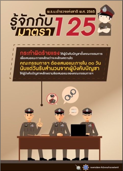 ประชาสัมพันธ์ เกี่ยวกับการดำเนินการทางวินัย ตาม พ.ร.บ.ตำรวจแห่งชาติ พ.ศ.2565 มาตรา 91,125 และ 51
